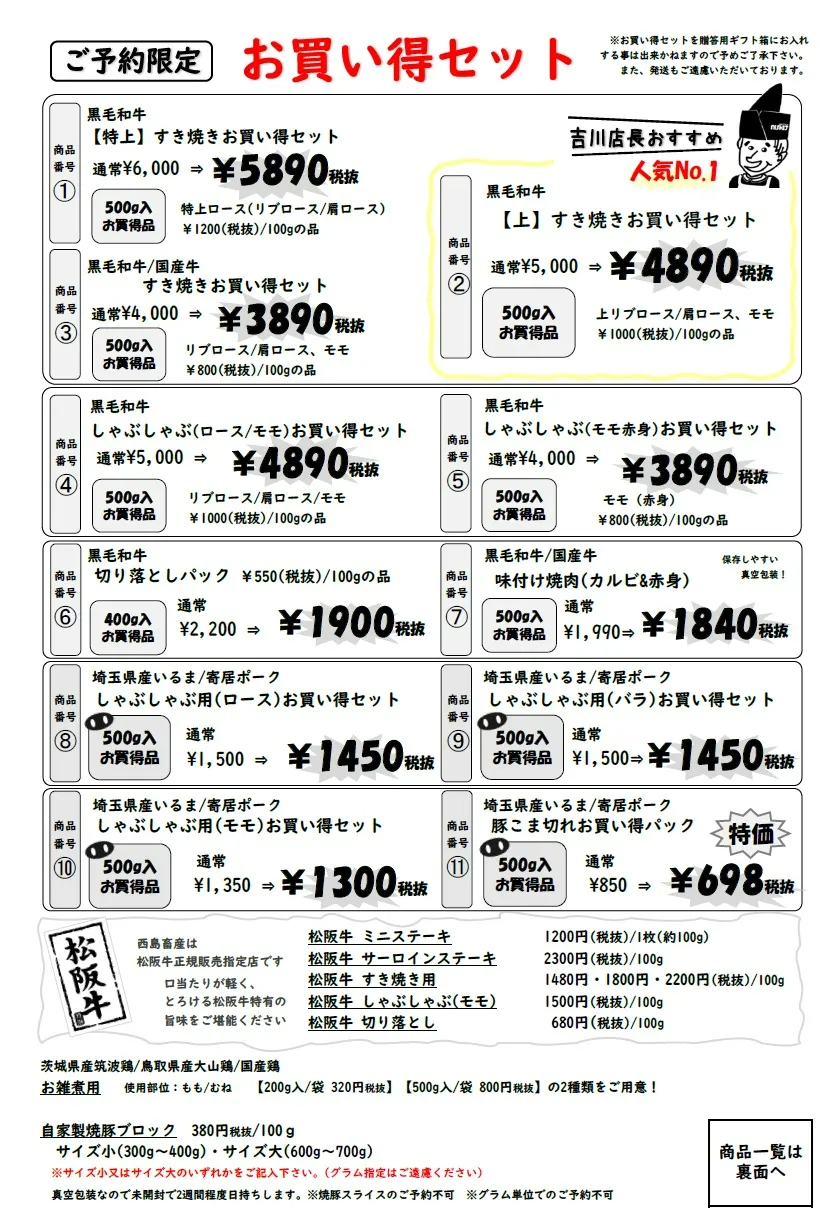 ご予約のみお買い得セットをご用意致しております。