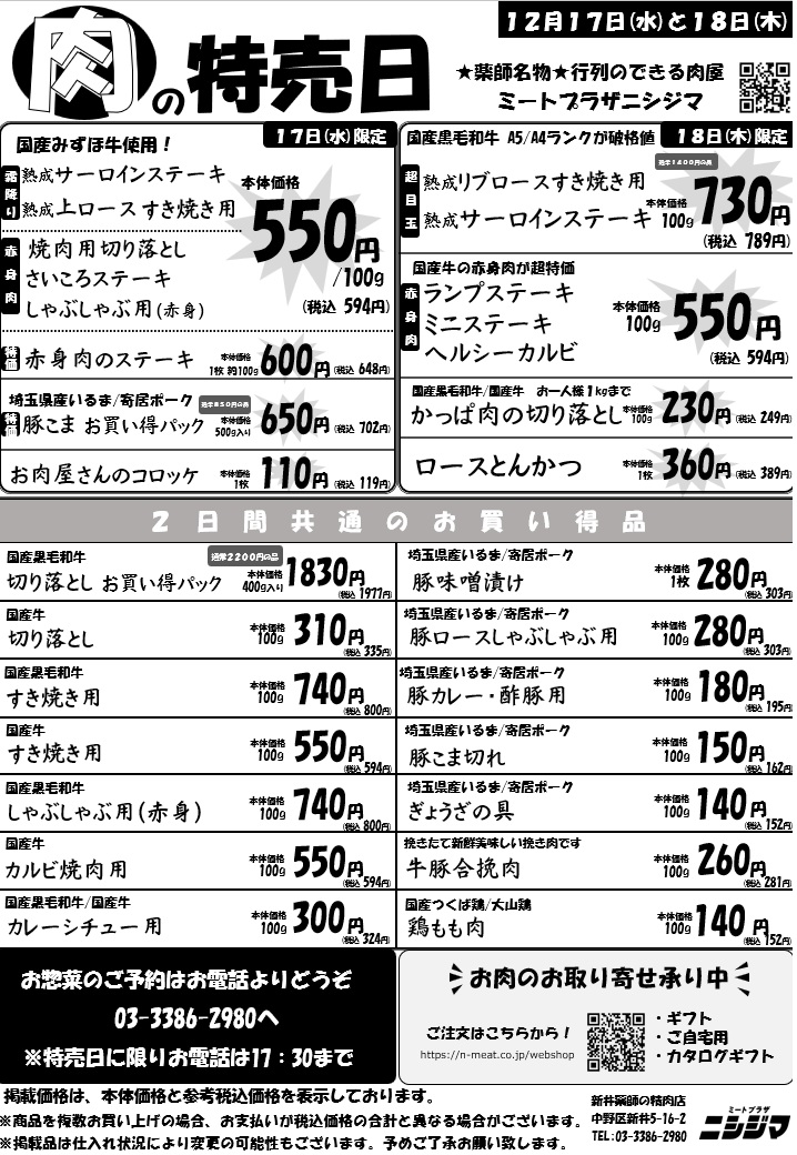 肉の特売日★肉屋の熟成ステーキ【12月17日-18日】