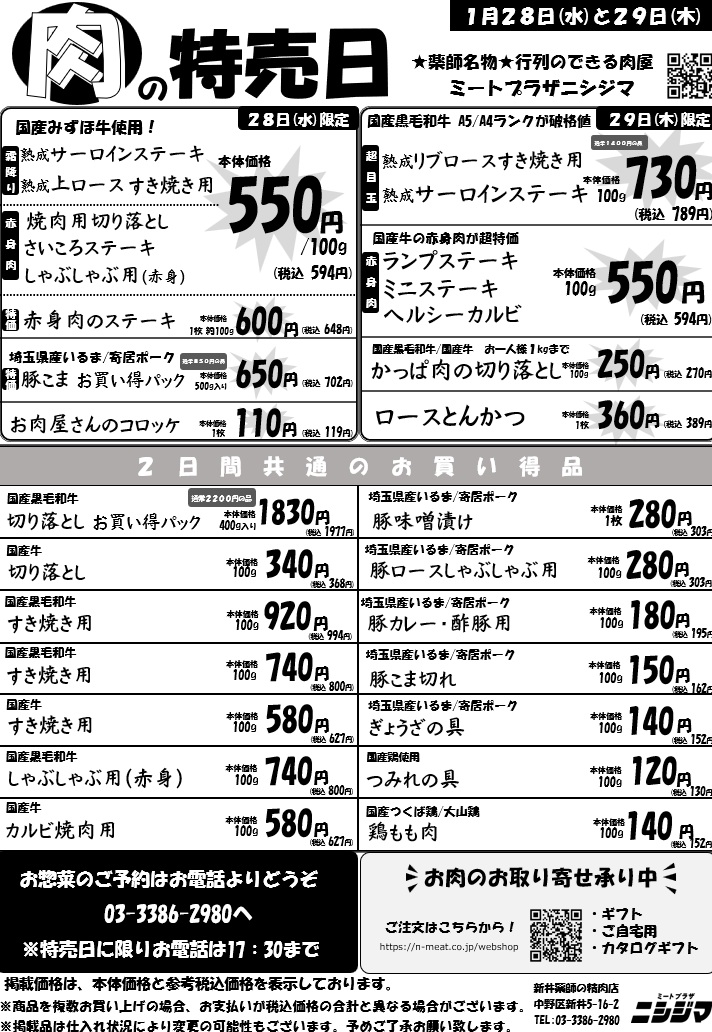 肉の特売日★肉屋の熟成ステーキ【1月28日-29日】