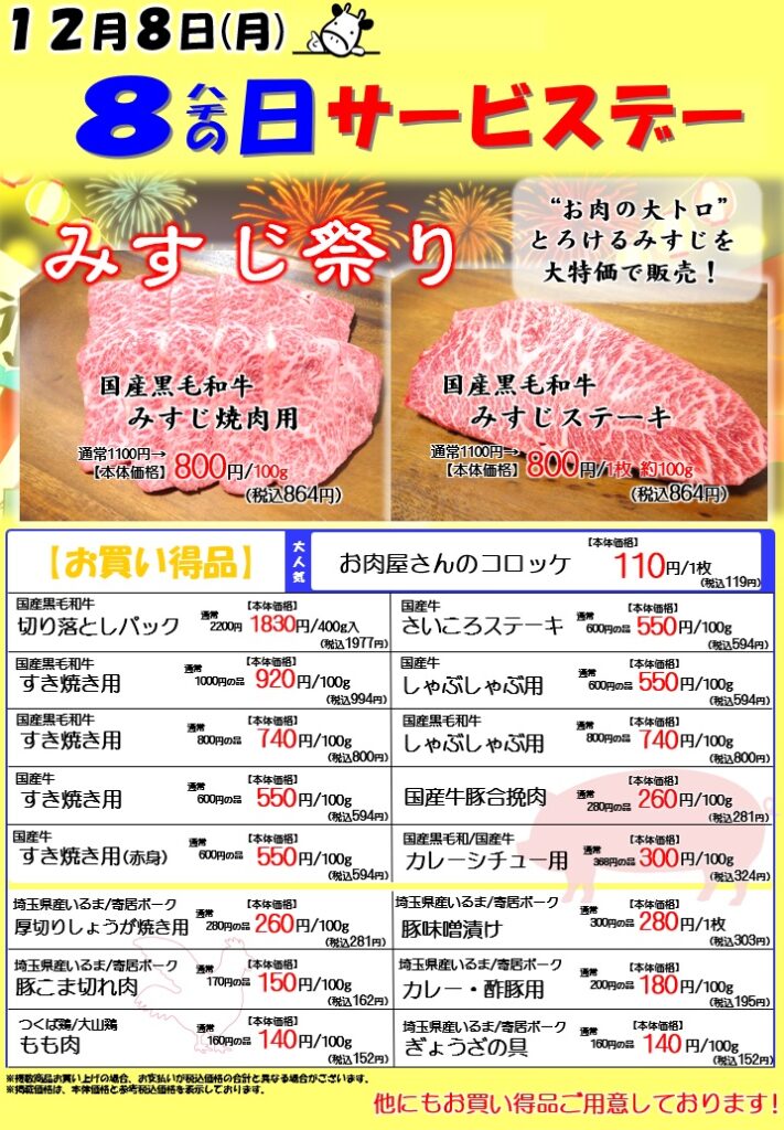 12月8日(月)は、「8の日サービスデー」です!
