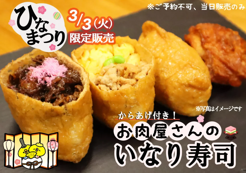 3月3日(火)ひなまつりに、お肉屋さんのいなり寿司販売致します!