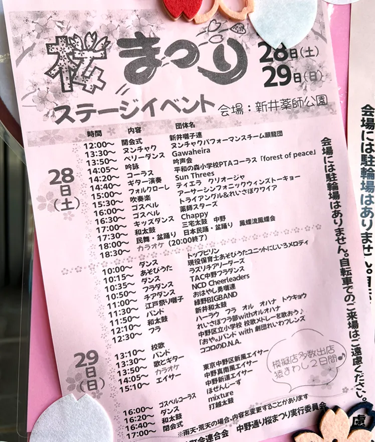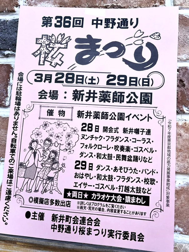 3月28日(土)29日(日)に開催される第35回 中野通り桜まつりのイベントについてご紹介します😊