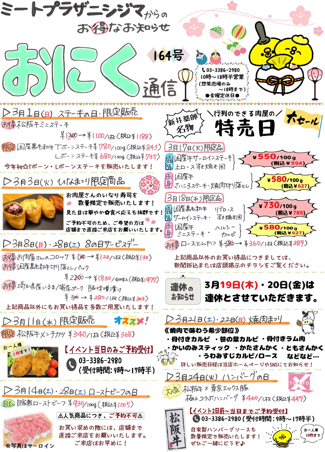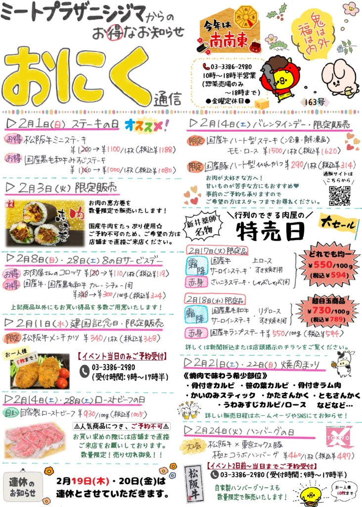 お肉通信 ミートプラザニシジマのお得なお知らせが満載のお肉通信! 毎月発行で、一か月分のイベント情報を記載しております。ミートプラザニシジマのスタッフが手書きで作成しています😊 ※店頭でお配りしているお肉通信は、配布分が無くなり次第終了となります。 ※予告なく、イベントの予定や内容を変更する場合もございますので予めご了承ください。